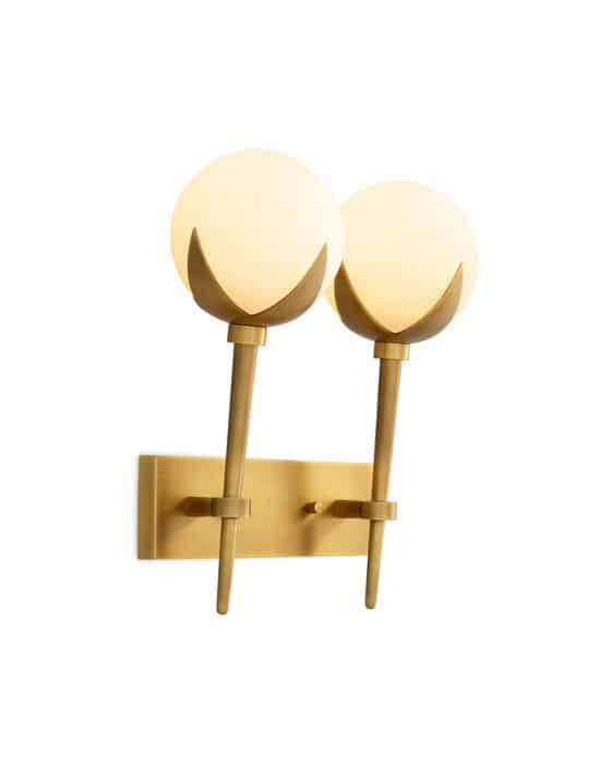 I samarbejde med Corey Damen Jenkins, opdag Eichholtz Alesa væglampe. Alesa væglampe er en elegant studie i himmelsk balance og forfinet geometri. Sfæriske alabasterdiffusorer, blødt oplyst indefra, er fastgjort til en varm messingbaldakin og skaber et udtryk inspireret af planeternes baner. Alabastrens naturlige årer møder messings glans i en sofistikeret kombination, der leder tankerne hen på både mid-century modern og Art Deco. Når lampen tændes, spreder globerne et blødt, månelignende skær, der forvandler lyset til skulptur.