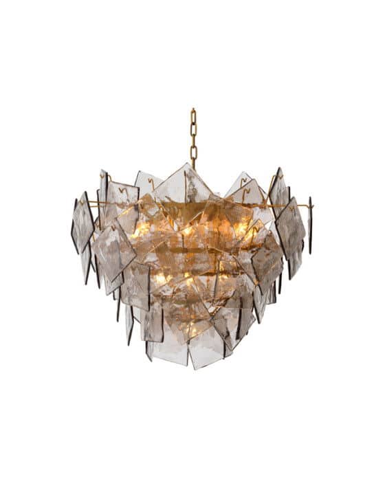 Biltmore lysekrone er en udtryksfuld og sofistikeret lysekrone, hvor klassisk elegance møder moderne lethed. Den antikke messingfinish giver et varmt og eksklusivt indtryk, som afbalanceres af let røgfarvet glas, hvilket skaber et blødt og stemningsfuldt lys. Med sin generøse form og harmoniske proportioner fungerer Biltmore som et naturligt blikfang over spisebordet, i stuen eller i en repræsentativ entré. Designet formidler diskret luksus og tidløs karakter til interiører med høje ambitioner.