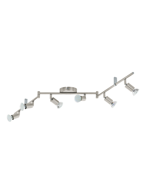 EGLO BUZZ-LED spotskinne i børstet stål, 6L. Med justerbar arme. Længde 105 cm, bredde 6,5 cm. GU10, 6 x 2,8 watt, 250 lumen, 3000 kelvin. IP20. Dette produkt indeholder lyskilder med energieffektivitetsklasse: F.
