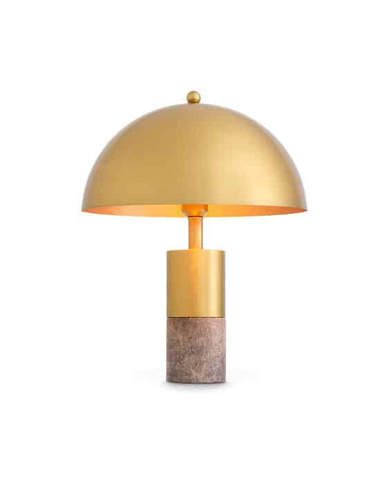 Giv ethvert rum et moderne udseende med Flair bordlampe. Med sin elegante cylindriske grå marmorbase og kuppelformede lampeskærm i messingfinish vil denne moderne bordlampe give en sofistikeret stil til din indretning. Kombiner med den store Flair-bordlampe for ekstra dybde.