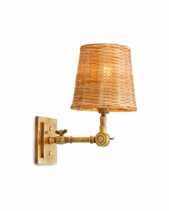 Inviter boutiquehotellets elegance ind i dit hjem med Eichholtz Wentworth Single væglampe. Inspireret af klassiske væglamper er vores populære Wentworth-model nu tilgængelig med en rottingskærm. Den har en armatur i messing og en justerbar arm, der gør det nemt at placere skærmen efter dine ønsker. Skærmen er smukt fremstillet i flet af rotting og giver en luksuriøs fortolkning af en naturlig og jordnær æstetik.